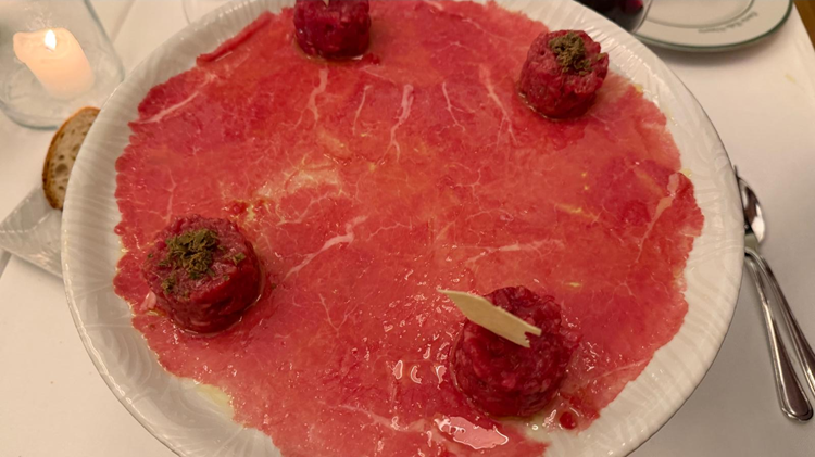 Grande attenzione è dedicata anche alla carne, protagonista sia nei secondi sia nella sezione dei crudi, dove compaiono carpacci, battute al coltello e tartare. Tra gli antipasti si alternano i grandi classici dell’osteria italiana e proposte più contemporanee, come l’Uovo della Vittoria, pan brioche dorato con avocado, salmone affumicato e uovo parfait, pensato come piatto identitario del locale.
