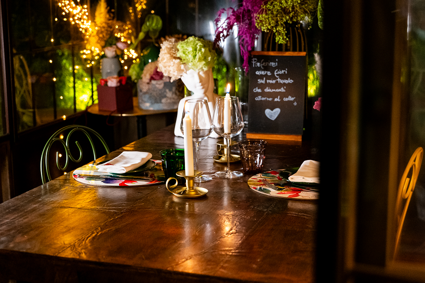 Una cena a lume di candela, con un allestimento a tema love e diverse proposte tra cui scegliere, da affiancare al menu di chef Pitacci. Si va da “amor mio”, dove la coppia sarà accolta con due calici di prosecco e una rosa rossa, a “questione di feeling” ed “emozioni”, fino all’offerta più ampia e romantica, un’esclusiva di chi vorrà riservare un tavolo nell’area del Fioraio: con “il cielo in una stanza” gli innamorati saranno omaggiati di un bouquet di dodici rose rosse, due flute di champagne e un entrée dello chef, e infine una mini tela ricordo Love.