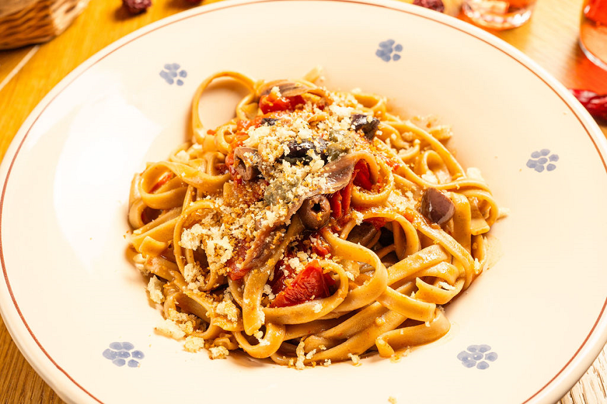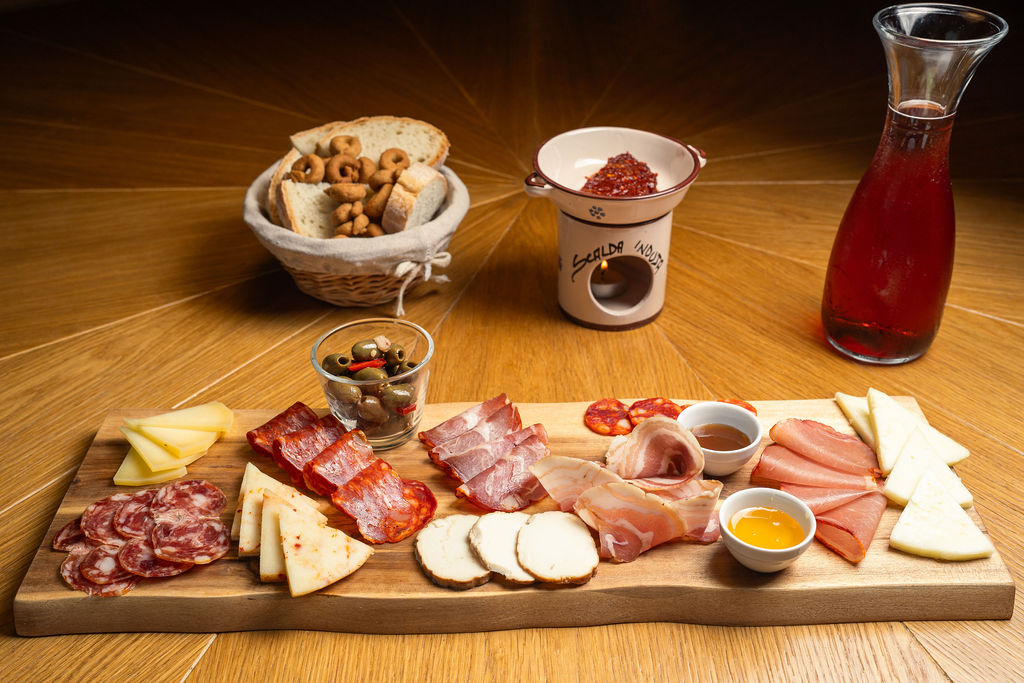 Un menu di terra e di mare, dove dagli antipasti ai dolci fatti in casa si vive un vero viaggio nei sapori calabresi, dal nord al sud della regione. Non mancano le polpette di melanzane, rivisitate in formato stecco, le bruschette con la sardella crucolese servita con un giro di olio extra vergine d’oliva dei Fratelli Renzo o la ‘Nduja di spilinga calda da spalmare sui crostini di pane. Ci sono le patate della Sila, le immancabili Polpette della nonna e le tipiche Alici scattiate. Gli antipasti si arricchiscono poi di una collezione importante di salumi come la ‘nduja, soppressata, salsiccia e capocollo, filetto di maiale e formaggi sempre locali come caciocavallo silano e il pecorino calabrese stagionato, firmati dalle aziende locali Madeo e Parrilla, che come tutti i prodotti arrivano da fornitori di fiducia.