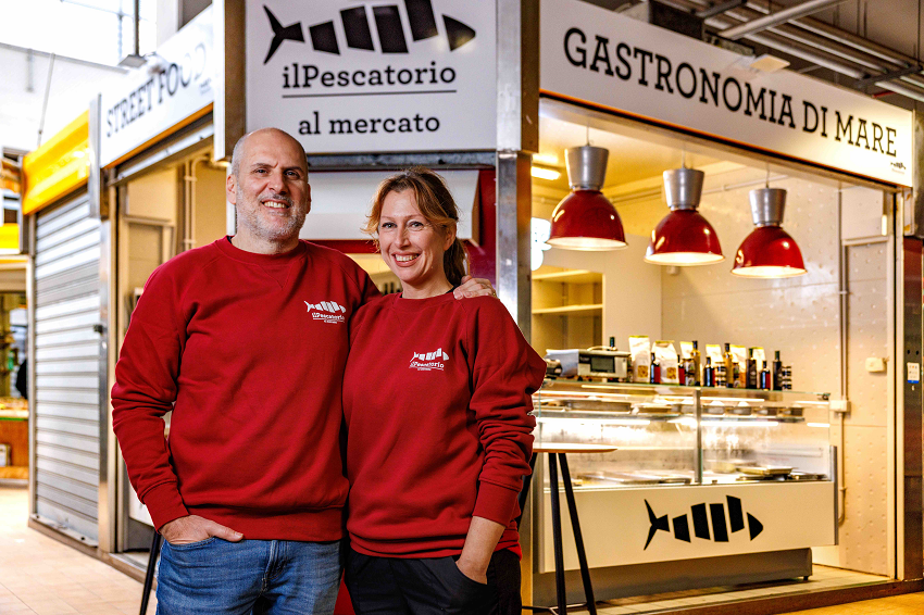 Il Pescatorio è il frutto del lavoro di Emanuele Smimmo e Simona Bontà, proprietari e anime del Pescatorio: lui seleziona la materia prima, lei la trasforma. “Io ci metto la mia provenienza - racconta Emanuele -, sono sardo di Sant’Antioco, una piccola isola di pescatori in cui praticamente sono cresciuto guardando le barche che tornavano dal mare”. Simona è invece da sempre appassionata di cucina, ha lavorato in hotel cinque stelle e come personal chef, ma soprattutto ha sempre studiato, specializzandosi in particolare in cucina orientale. Sono queste le conoscenze che ha applicato al mondo del mare, rispondendo inizialmente a un’esigenza: come valorizzare il prodotto freschissimo che arrivava sul banco della pescheria? Da lì prima il banco della gastronomia, poi la proposta del bistrot e ancora quella dello street food. Oggi alla famiglia si aggiunge il Box 111.