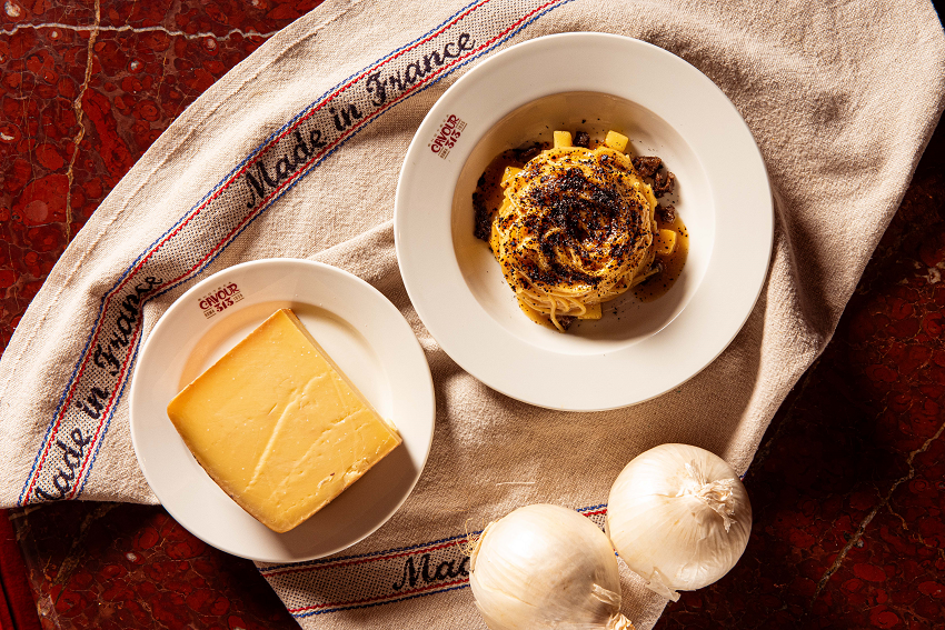 Resta l’intenzione di incoraggiare questo scambio virtuoso Italia-Francia: un piatto che racconta bene questo incontro tra tecniche, tradizioni e sapori è ad esempio lo Spaghettino come una soupe a l'oignon, che lega tramite il gusto una pasta italiana a un classico della tradizione d'Oltralpe. Altri piatti che meritano una menzione sono l’Arzilla, fondo di manzo, broccolo romanesco, bagna cauda e l’Anatra alla diavola, uova al vapore, fegatini e insalata di erbe.