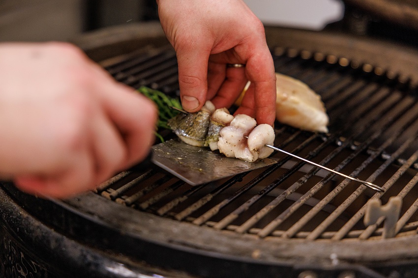 Conviviali e divertenti, i piatti di Dogma sono a base di pesce e di ingredienti provenienti da produttori attenti ed etici. La cottura alla brace, stimolante e contemporanea, lascia percepire la tecnica imparata negli anni dallo stesso Gabriele.