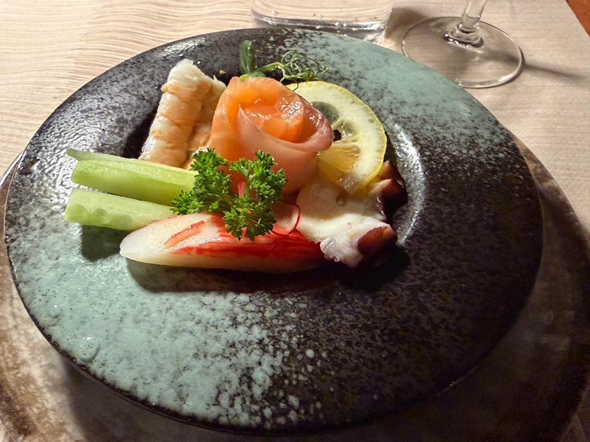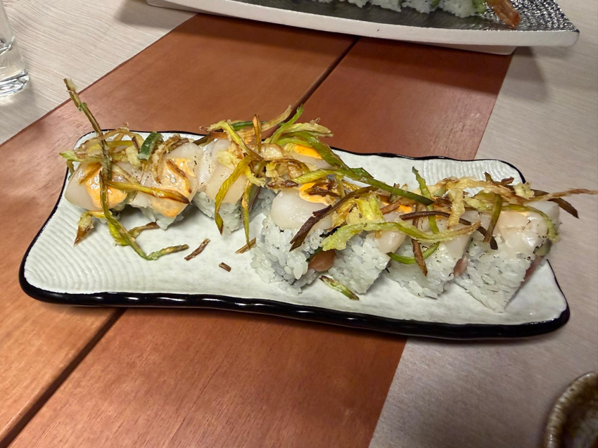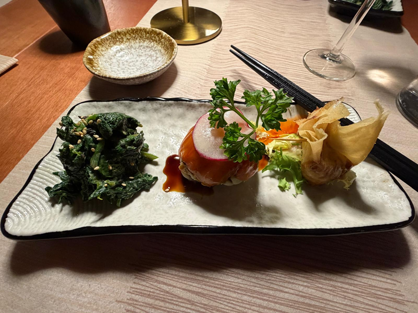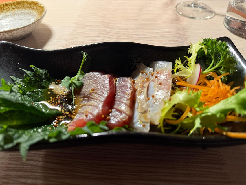 La proposta gastronomica ruota attorno al sushi e alle specialità giapponesi, con una selezione che cambia quotidianamente. In menu carpacci, gyoza, sashimi, tartare, nigiri, uramaki e temaki, accanto a creazioni più ricercate come il roll di wagyu. La carta dei vini comprende circa quaranta etichette, con una prevalenza di bianchi e bollicine. Ampio spazio è riservato anche al sakè, la cui selezione è curata dal sakè sommelier Roger Acosta e suddivisa in tre categorie – Umami, Aroma e Harmony – pensate per accompagnare e valorizzare i piatti. L’offerta si completa con cocktail a base di sakè e distillati giapponesi.