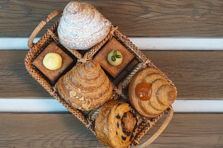 Tutte le preparazioni lievitate che realizziamo nel nostro laboratorio sono prodotte esclusivamente con lievito madre”. Ci tiene a specificarlo Marco Fontana che, anche se oggi è a capo di una squadra di sei pasticceri – il team di Cristalli di Zucchero, appunto -, non ha mai smesso di formarsi. “Nel nostro capo è necessario studiare costantemente perché la pasticceria è una disciplina in continua evoluzione ed è per questo che appena posso, e gl’impegni in laboratorio me lo permettono, me ne vado qualche giorno a Treviso dal maestro pasticcere Leonardo Di Carlo a cui devo tutto”. Dunque, quella del pastry chef Fontana è di fatto una passione senza fine verso un mestiere che non ammette superficialità e improvvisazione a partire proprio dal grande impegno per tutte le preparazioni del pasto più importante della giornata, la colazione! Si parte con il cornetto classico francese e quello all’italiana. Con l’impasto francese, oltre al croissant con una spiccata nota di burro e una grande sfogliatura, nascono anche il pain suisse, il pain au chocolat e molte altre brioche sfogliate. L’impasto del cornetto di scuola italiana, questo caratterizzato dalla nota aromatica dovuta dalla vaniglia e dall’arancia, diventa la base di altre preparazioni particolari come il il New York Roll. I cornetti italiani ed i croissant sono disponibili ovviamente nella versione classica e impreziositi da diverse farciture come crema pasticcera, al pistacchio, arachidi e caramello salato, ai frutti rossi e molte altre ancora. Completa la proposta dolce del mattino tutta la selezione di monoporzioni da forno e le torte da credenza che con mancano mai. Da bere, cappuccini e caffè – sia espresso che specialty – estratti da miscele della torrefazione Le Piantagioni del Caffè, di Livorno.