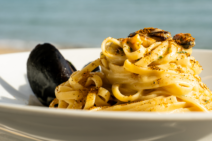 Era il 2003 quando Renato Cardogna, allora poco più che ventenne, decideva di prendere in concessione una striscia di spiaggia a Sperlonga e assieme ai suoi genitori e alla sorella Pierserena dare vita a un chioschetto con vendita di panini, insalate e preparazioni espresse, ad affiancare l'attività di noleggio di lettini e ombrelloni. La risposta del pubblico è stata fin da subito positiva, e la famiglia comprende che quello sarebbe stato solo l'inizio. La madre ha infatti un'intuizione, di arricchire l'offerta con primi piatti caldi: tonnarello homemade alle vongole, o con le cozze. "Ho visto - racconta Renato - che la gente apprezzava questa sua idea, e quindi ho pensato che quella fosse la giusta direzione da prendere, così ho seguito alcuni corsi di cucina, per migliorare la tecnica e ampliare la proposta". Ed è così che oggi Bazzano Beach, oltre a essere un vivace stabilimento balneare, si presenta anche come un accogliente e caratteristico ristorante sulla spiaggia, da vivere tutta la giornata.