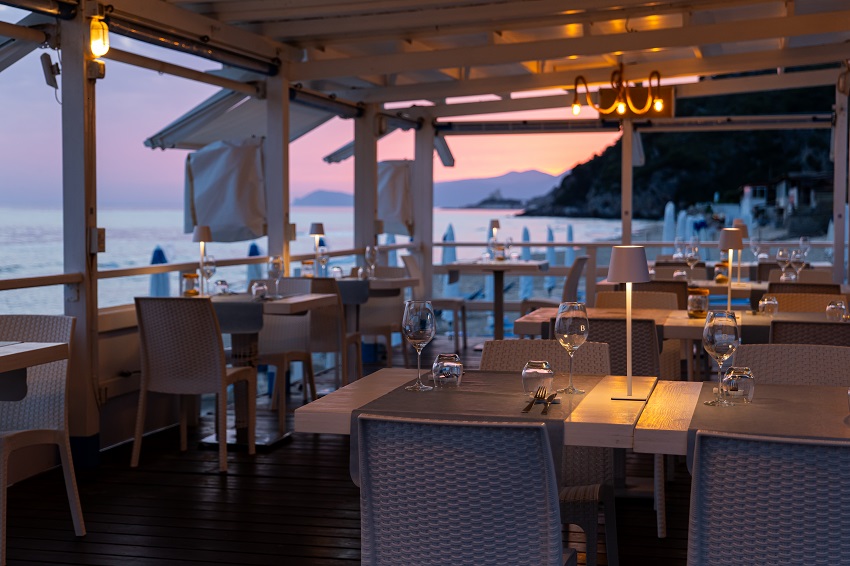 Ma questa è oggi solo un'attività sussidiaria, in quanto il ristorante è attivo sin dai primi di aprile, fino ad autunno inoltrato. Entrare a Bazzano Beach è come accedere a una palafitta a ridosso della spiaggia, una struttura completamente in legno che annovera settanta coperti, con due verande (una frontale e l'altra laterale) in cui dominano le nuances del bianco e dell'azzurro, in perfetta sintonia con i colori e l'ambiente circostante. Da qui alla spiaggia si sviluppa l'offerta di intrattenimento, con aperitivi domenicali, musica dal vivo, e un calendario di dj set che vedrà in console diversi volti locali e nomi noti del clubbing capitolino, come Paolo Pompei e Massimo Marino, tra i protagonisti delle serate al Room 26, e vari eventi live radio acoustic. Non prima di concedersi una pausa di gusto a pranzo, con le specialità della cucina. Ma è la sera che (altra novità di questa estate) si può apprezzare la speciale proposta denominata “Bazzano Beach Experience”, mentre il cielo si infiamma e il sole si tuffa nel mare.