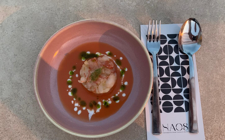 A cambiare è soprattutto la proposta gastronomica. A curarla è Fabrizio Cervellieri, chef-patron di Aede, che ha firmato il nuovo menu e formato la brigata di cucina. La linea è chiara: partire dalle radici greche di Naos (che nel mondo ellenico indica lo spazio sacro della luce) per abbracciare i sapori di tutto il bacino mediterraneo, dalla Spagna al Medio Oriente, passando per l’Italia e arrivando fino al Sudafrica.