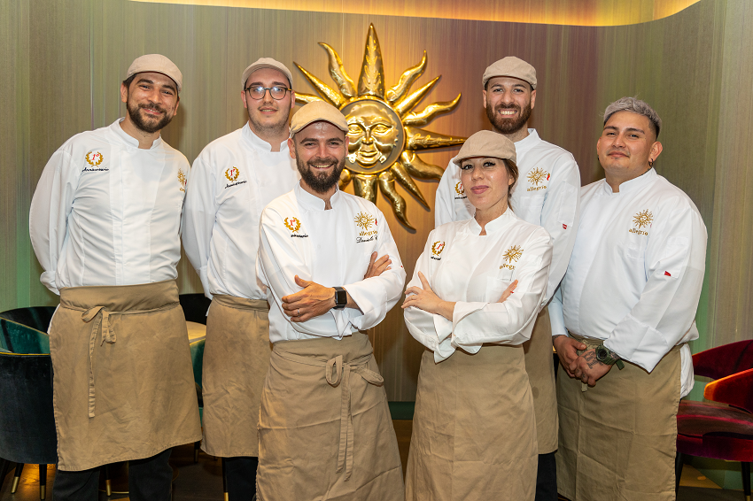 Sono quattro le sale in cui accomodarsi e ognuna esprime, attraverso i colori e l’arredamento, altrettante emozioni. Si parte con la sala Joyful (la allegria/gioia), la più importante perché è quella dedicata alla “gioia” a cui tutti aspiriamo. C’è poi quella dedicata alla “fortuna”, quindi la sala Lucky e ancora la Intrepid, ispirata a quell’indole tipicamente italiana fatta di “coraggio” e grinta. Si chiude con la sala dedicata alla cura e alla “passione,” lo spazio In Love, anche questa trae ispirazione dall’animo passionale che è un vero “marchio di fabbrica” della più autentica italianità. Allegrío ha dato vita ad uno spazio in cui la proposta gastronomica ricalca l’italianità nel suo senso più puro, ricordando gli anni della Dolce Vita che hanno segnato per sempre l’immaginario collettivo con una spinta emozionale davvero unica.