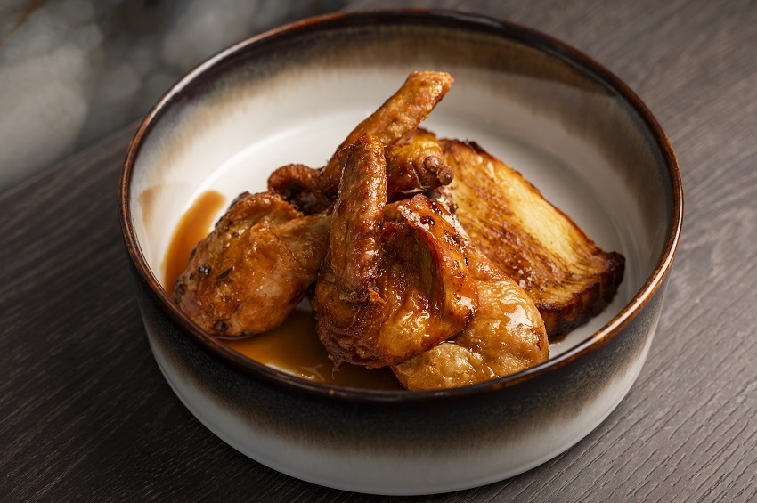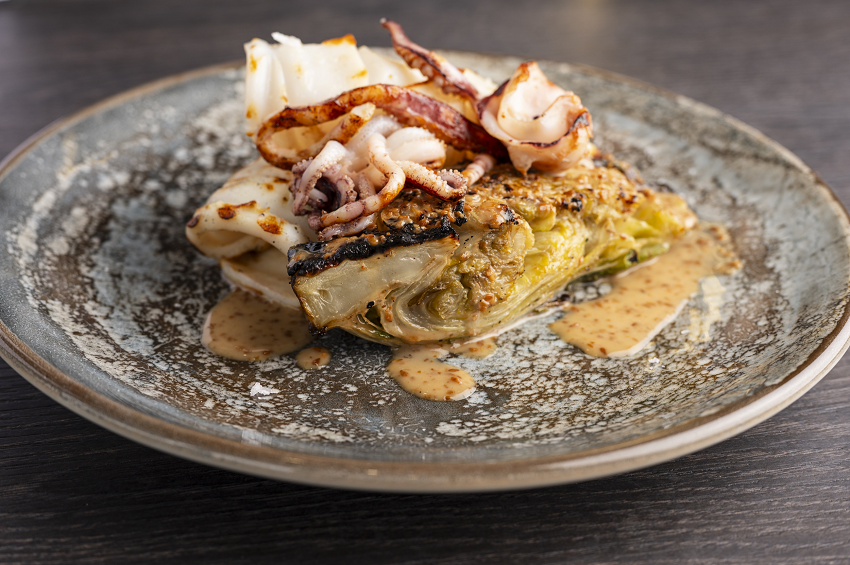Risalendo il menu la cena esordisce con le crudités e gli antipasti, tra questi la fettuccina di calamaro, pomodoro confit, cipolla dolce e concia di pane, lo shabu shabu di tonno, una fettina di tonno scottato con brodo dashi, e l’involtino croccante di spigola in porchetta con verdure alla soia e salsa sriracha a sublimare il tutto.