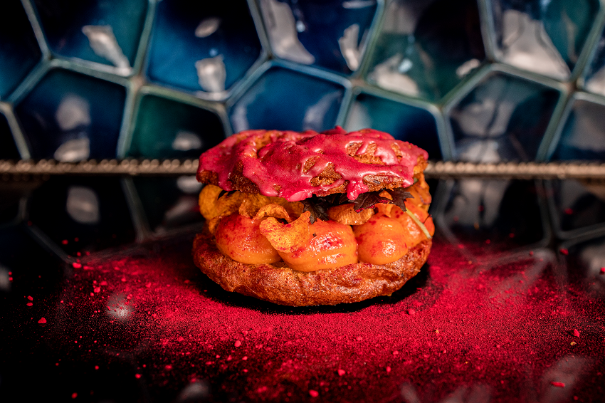 Tra le nuove proposte il Cruller tuberi e radici, ispirato da un churro dolce assaggiato durante un viaggio a New York, è una pasta choux vegana salata dove la parte grassa è stata sostituita con la patata, il ripieno è a base di cremoso di carote bbq, scapece di topinambur e carote, glassa alla barbabietola.