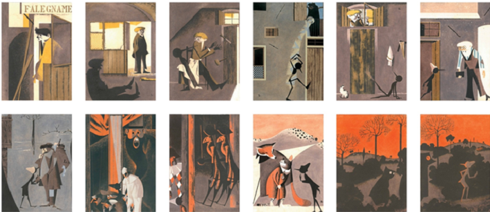 I colori predominanti di questo lavoro sono: l’azzurro carta da zucchero, arancione, rosso spento, marrone e ocra, che vengono alternati in una sorta di monocromatismo solo apparente, per costituire in realtà un raffinato sovrapporsi di piani che alimenta e sottolinea le suggestioni della narrazione. Una particolarità tecnica è la realizzazione dei fondi colorati delle tavole: Mattioli stendeva a pennello uno strato di colore e, con la tempera ancora fresca, completava la campitura spandendo e uniformando il colore con i polpastrelli. Grande è la forza espressiva delle inquadrature, dove pur nella loro sinteticità e libertà creativa, Mattioli mette in risalto pochi particolari per dare il senso della narrazione. L’ambientazione è quella di una Toscana popolare, artigiana e contadina come si evince dalle architetture ai paesaggi, passando per i dettagli secondari (i panni stesi, il fiasco di vino, le coperture a “onduline”). È un’interpretazione moderna, come l’hanno definita in tanti perché innovativa e sempre attuale ma soprattutto poetica, quasi metafisica entro composizioni geometriche ricercate, di affascinante originalità.
