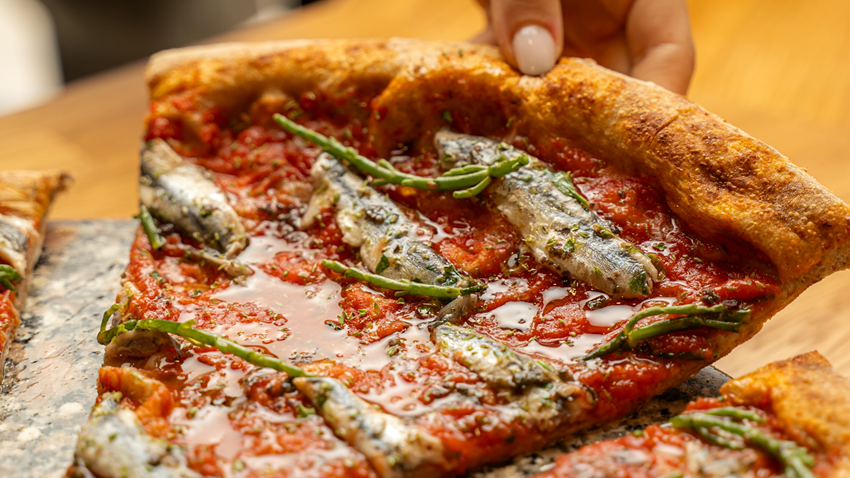 La filosofia di Sfizio è chiara: quasi tutto è prodotto internamente, dai cornetti della colazione all’impasto della pizza, realizzato con farine selezionate, anche semi-integrali. La scelta dei fornitori racconta una filiera artigiana: salumi, formaggi, miele, vini di piccole cantine, birre artigianali, kombucha e caffè di torrefattori indipendenti. «Il prodotto fatto in casa è identità», sottolinea Leonardo. «In un quartiere dove tutto si assomiglia, è ciò che ci distingue».