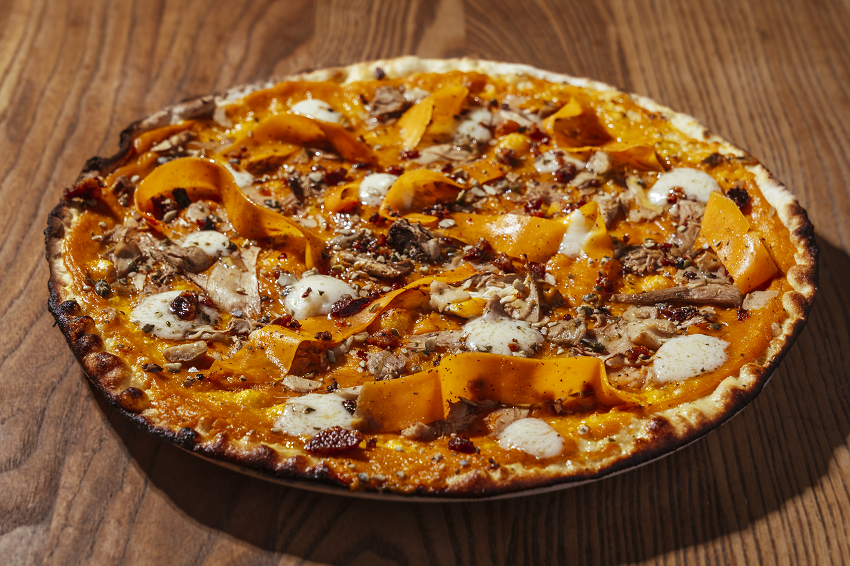 “La nostra è una linea che rappresenta la direzione intrapresa e la nostra città, e una serie di specialità pensate per sorprendere con abbinamenti creativi e ingredienti di stagione” racconta il pizzaiolo Gabriele Tomassetti. L’estro e il talento che lo caratterizzano sono certificati anche dai riconoscimenti ottenuti dall’indirizzo, che può vantare i due spicchi della guida Gambero Rosso 2025, e la menzione della 50 Top Pizza nella sezione dedicata alle pizzerie eccellenti. Il menu è ricco e divertente, sin dalla presentazione in stile pop-collage, e negli antipasti già propone il primo richiamo all’autunno, con una polenta fritta servita con porcini trifolati, o il supplì contadino con zucca, gorgonzola e crumble di guanciale. A questi si affiancano i padellini, riconfermati in carta per l’eccellente risposta del pubblico, con un prefermento biga dall'incredibile idratazione (85%, ben oltre quello della tonda romana), un impasto da 165 grammi in doppia cottura e lavorato con diversi tipi di condimento; pensata per la condivisione, la pizza al padellino si presenta in tre varianti: roast beef e salsa tonnata, con scarola, pinoli, uvetta e alici, o con broccoletti ripassati e provola. Iconico simbolo di Svario, la conchetta - antipasto unico, un taco di pizza romana servito caldo - si presenta ripieno di crudo e bufala, con cavolo nero e provola, o in versione “polpetta della nonna”.