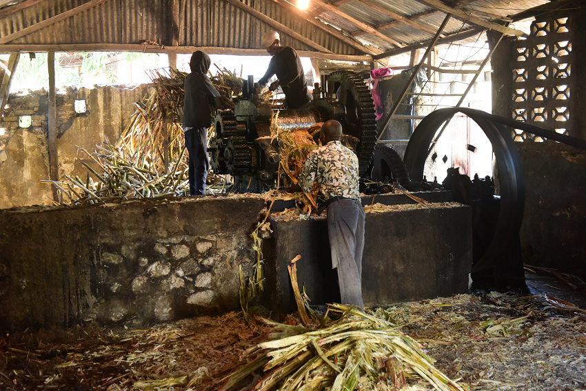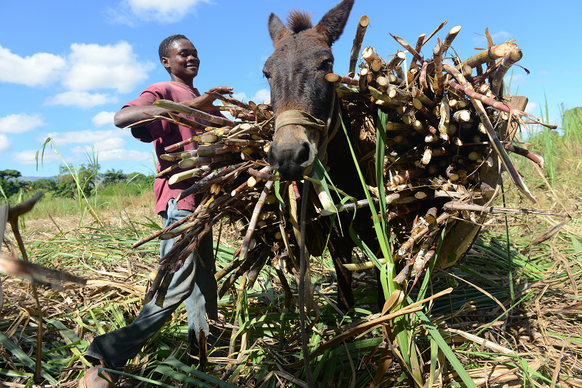 - Il trasporto della canna da zucchero deve avvenire con muli o carri trainati da tori, un antico metodo che si rivela efficiente nel territorio montuoso di Haiti